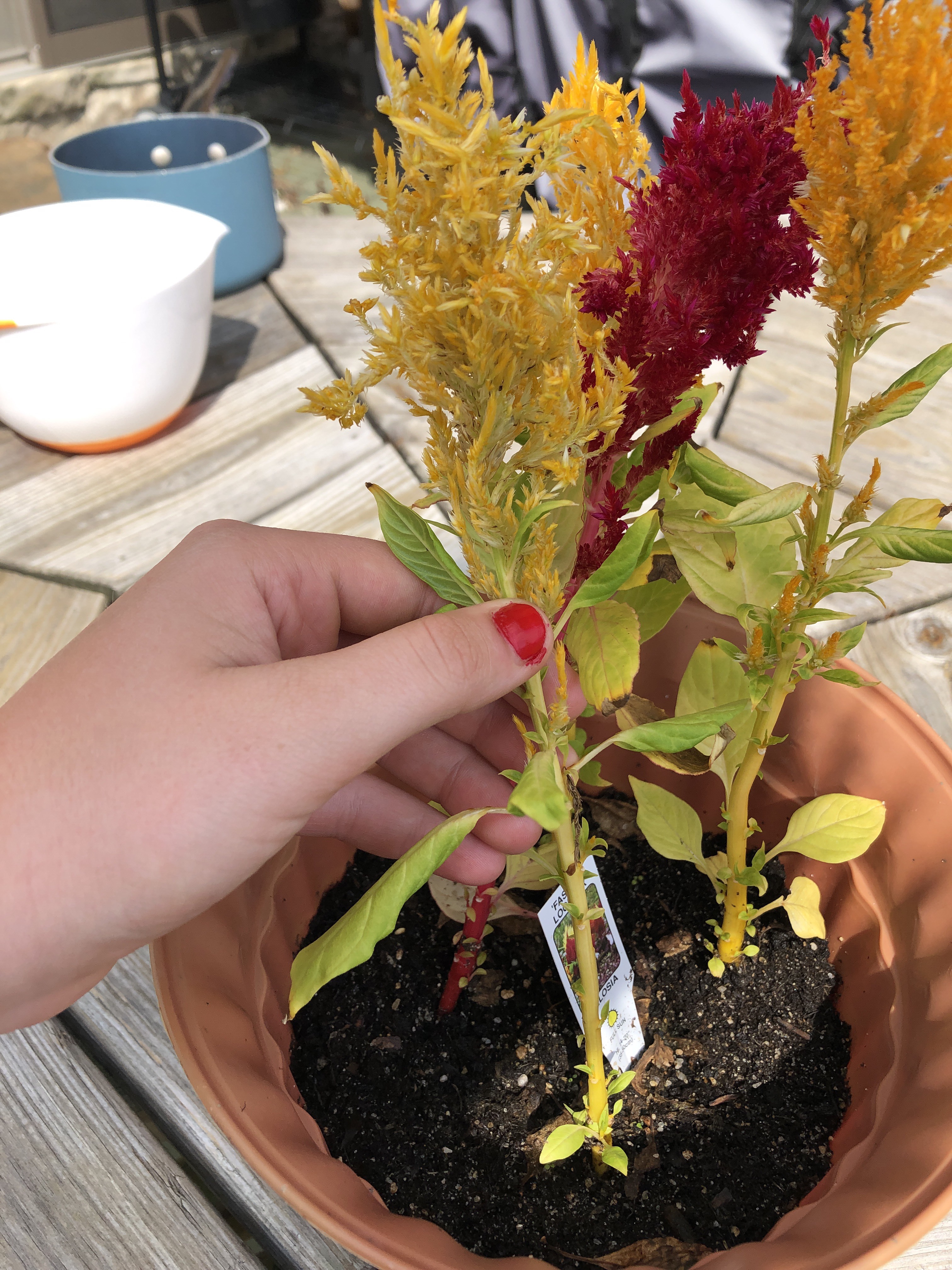 Dominant phenotype results from a dominant gene. Recessive phenotype results from a recessive gene. In this plant pot, the dominant phenotype is yellow plants. The recessive phenotype is the pink.
